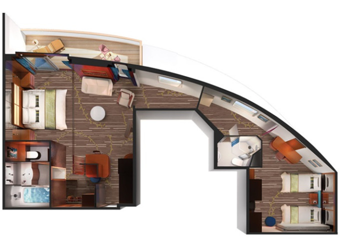 | S4 - Deluxe Family Suite od 56 m² / balkón 9 m². 9. paluba - vpredu. Max 5 osôb. Výhody Suite. | 17 356 € 8 678 € za osobu | ||