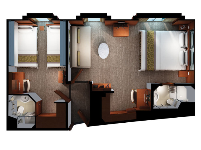 | SG -Family Suite Aft-Facing 31 m² / balkón 8 m². 7. až 10. paluba - vzadu. Max 3-6 osôb. Výhody Suite. | 12 476 € 6 238 € za osobu | ||